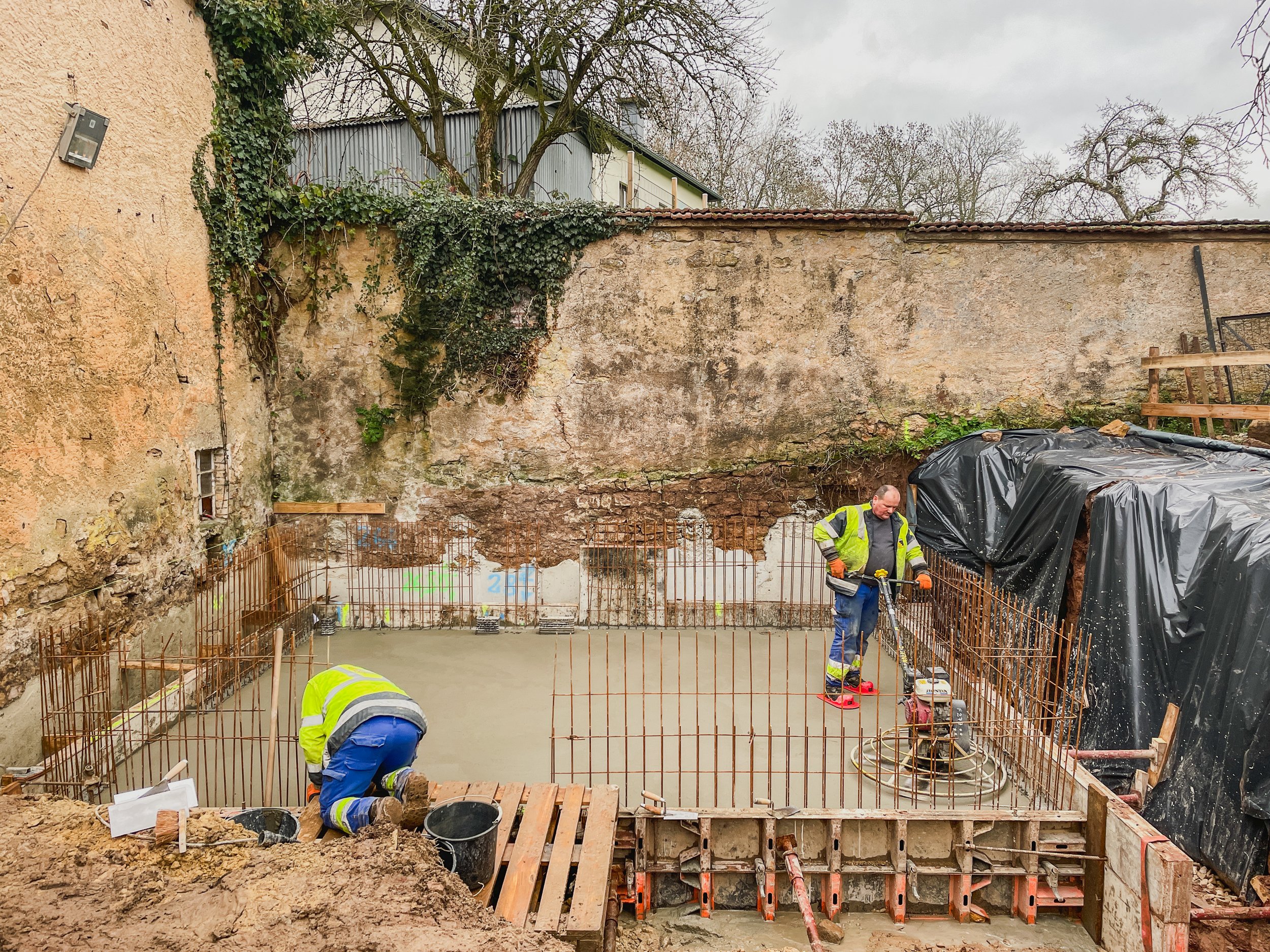 Chantier décembre 2025 │ construction du socle des étables et de la nouvelle grange au fond du jardin