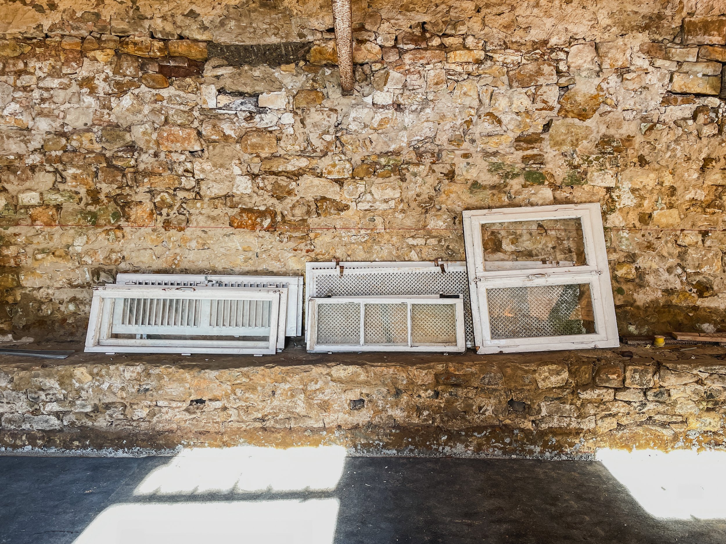 Chantier décembre 2025 │ fenêtres et volets historiques entrestockés