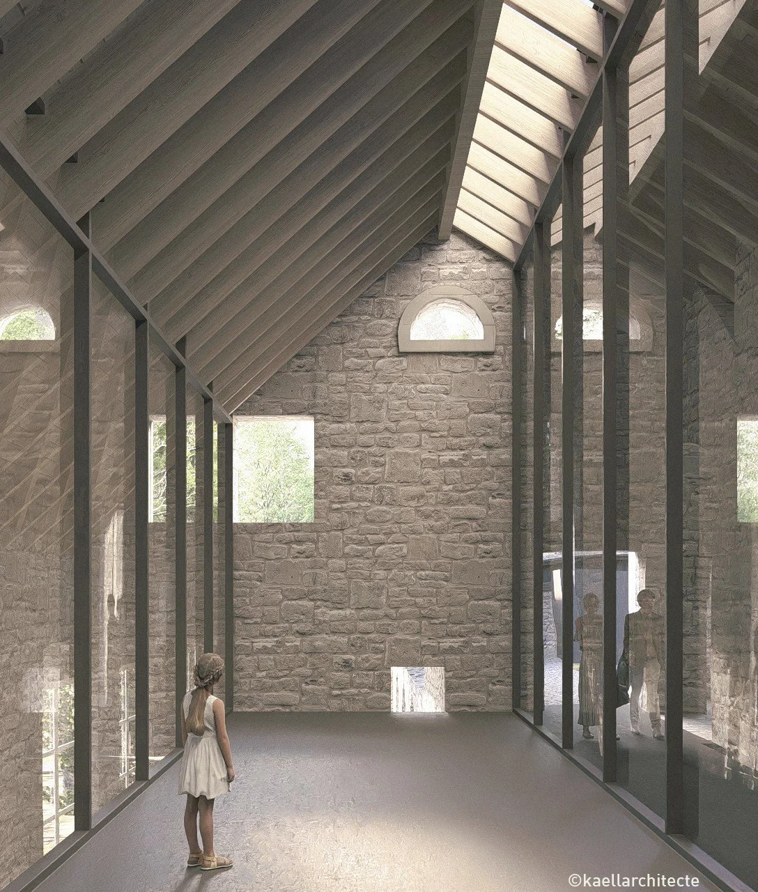 Le Cryptoportique, sert de terrasse, scène pour concerts et Lapidaire - image par Elmes pour l'étude de faisabilité juin 2024
