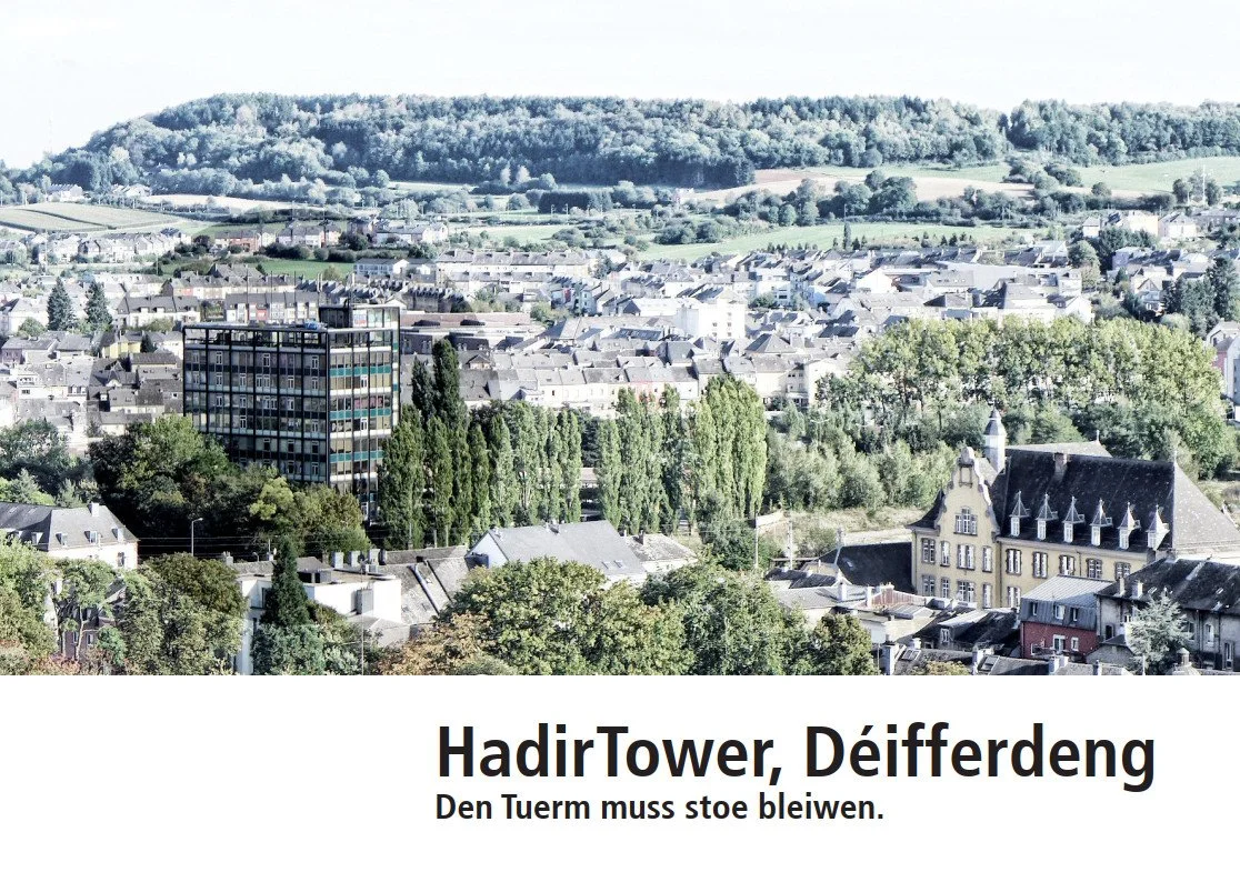 campagne collective pour la sauvegarde du HadirTower à Differdange (auteurs: Norbert Kaell, Claudine Kaell, Alain Linster, Julie Marthe Hoffmann, Charles Wennig, soutenus par Jim Clemes, Philippe Nathan)